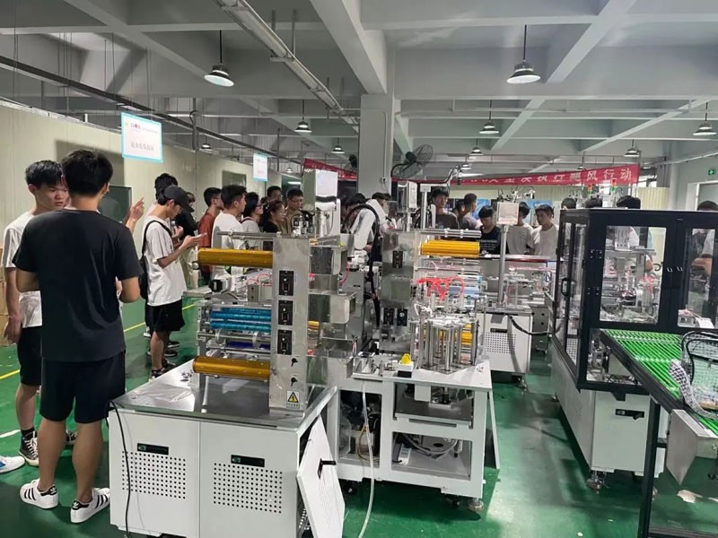 同學(xué)們參觀調(diào)試車間,對調(diào)試流程環(huán)節(jié)詢問技術(shù)人員