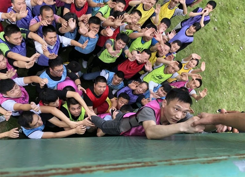 下午,在拓展教練的帶領下,大家分為6支小分隊,通過集思廣益,每隊都在二十分鐘內(nèi)確定了自己的隊名、隊訓和隊旗。分別進行了群龍取水、翻越“畢業(yè)墻”等團隊協(xié)作小游戲。在拓展過程中,所有隊員都充分展示了勇于挑戰(zhàn)的奮斗精神、團隊的合作創(chuàng)新精神。