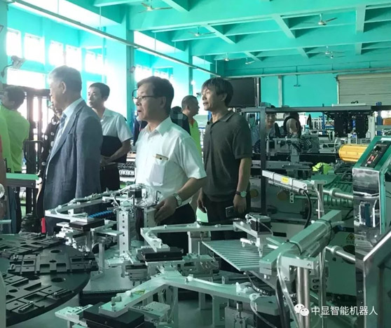 一行在中顯智能吳總裁的帶領(lǐng)下參觀了中顯東莞學(xué)習(xí)型工廠制造車間,制造部施總對(duì)公司現(xiàn)有生產(chǎn)設(shè)備一一做了詳細(xì)介紹,全院長(zhǎng)與其校方領(lǐng)導(dǎo)一行對(duì)于中顯智能自主研發(fā)、生產(chǎn)的自動(dòng)化設(shè)備表示高度贊揚(yáng)與認(rèn)可。